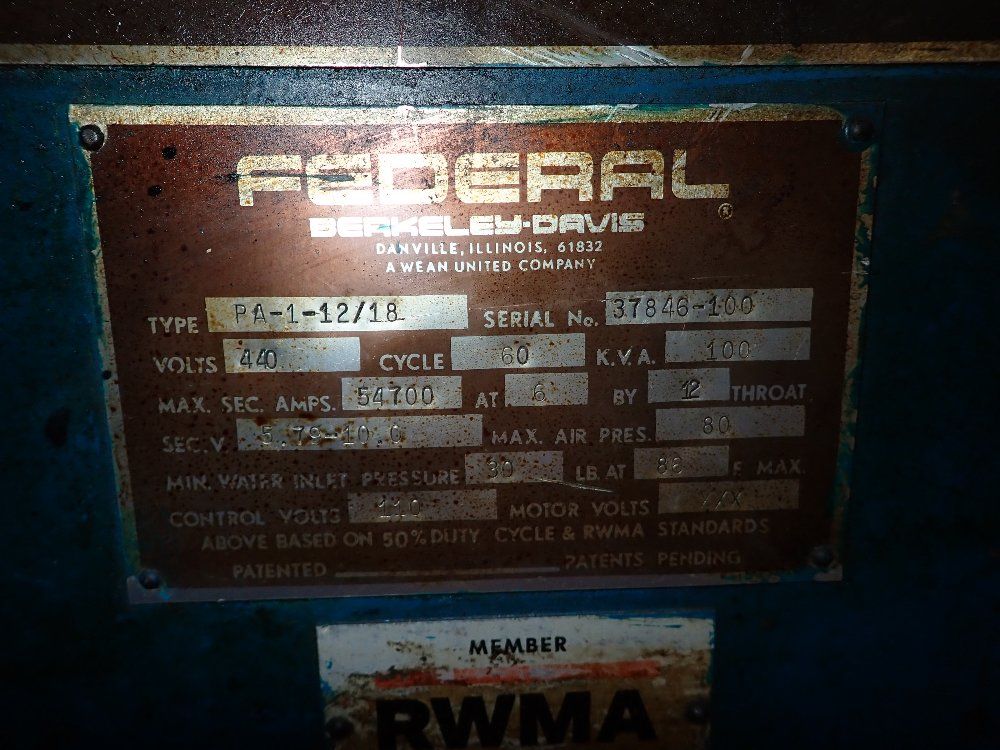 Federal 100 Kva Pa-1-12/18 Spot Welder - Pa-1-12/18